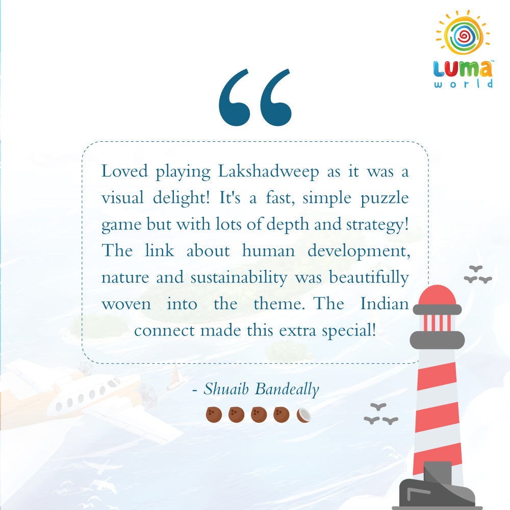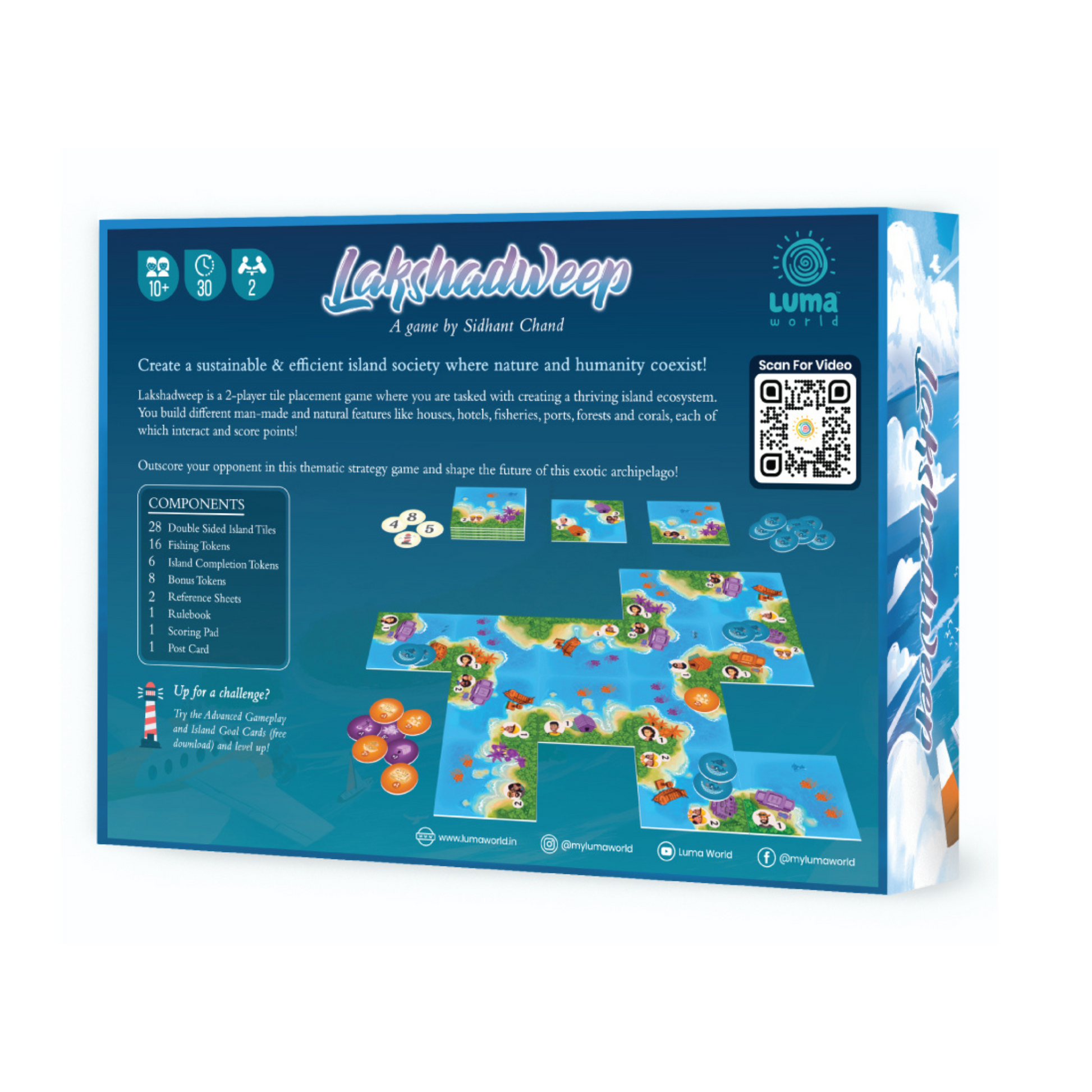 Create a sustainable and efficient island society where nature and humanity coexist! Place island tiles to together build a unique map of Lakshadweep and outscore your opponent with clever tactics.